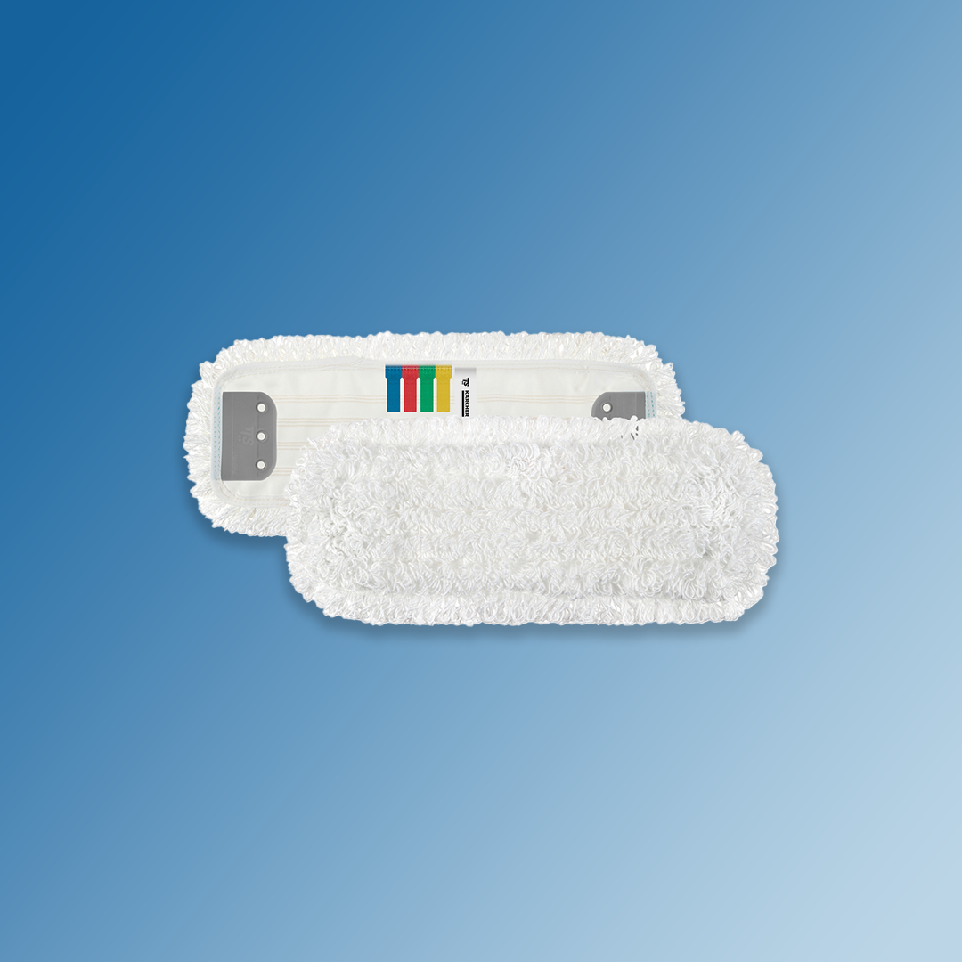 Petlje ovog mopa za brisanje su u potpunosti napravljene od visokokvalitetnih mikrovlakana. U vezi sa njihovom ravnomernom distribucijom po celoj unutrašnjoj površini mopa, ovo garantuje optimalnu moć rastvaranja prljavštine i upijanja vlage mopa. To ga čini savršenim za čišćenje u svim oblastima sa velikom količinom prljavštine, kao i na neravnim podovima – takođe u industriji. Pametna klapna sprečava bilo kakav kontakt sa kožom od strane osoblja za čišćenje tokom ili nakon čišćenja. Dodatno, mop od mikrovlakana ima ukupno 4 trakice u plavoj, crvenoj, žutoj i zelenoj boji. Sa ovim sistemom označenim bojama, mop se može jasno dodeliti određenom delu koji treba očistiti i unakrsna kontaminacija je efikasno sprečena – trakice koje nisu potrebne se jednostavno odseku. Mop od mikrovlakana je savršen za upotrebu u sistemu sa kolicima sa dve kante ili kolicima sa jednom kantom i presom.